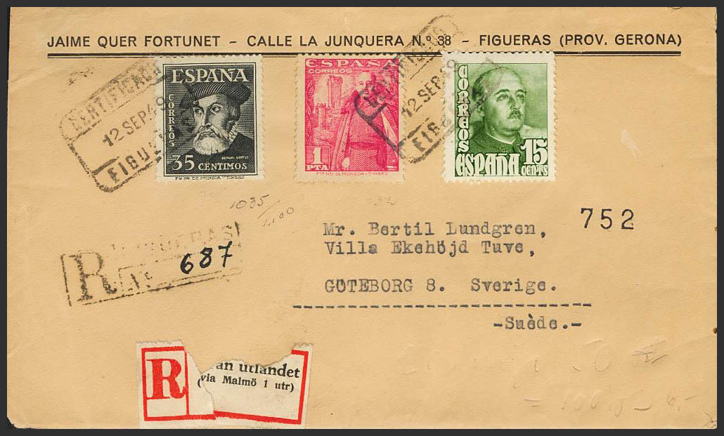 Cataluña. Historia Postal. CERTIFICADO / FIGUERAS. MAGNIFICA.