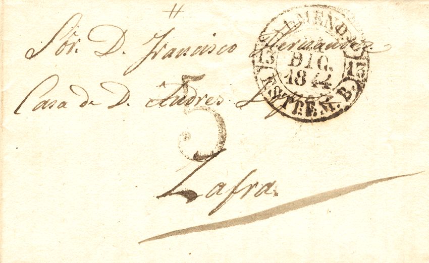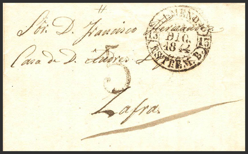 Extremadura. Prefilatelia. ALMENDJO / EXTREM. B, en negro. MAGNIFICO.