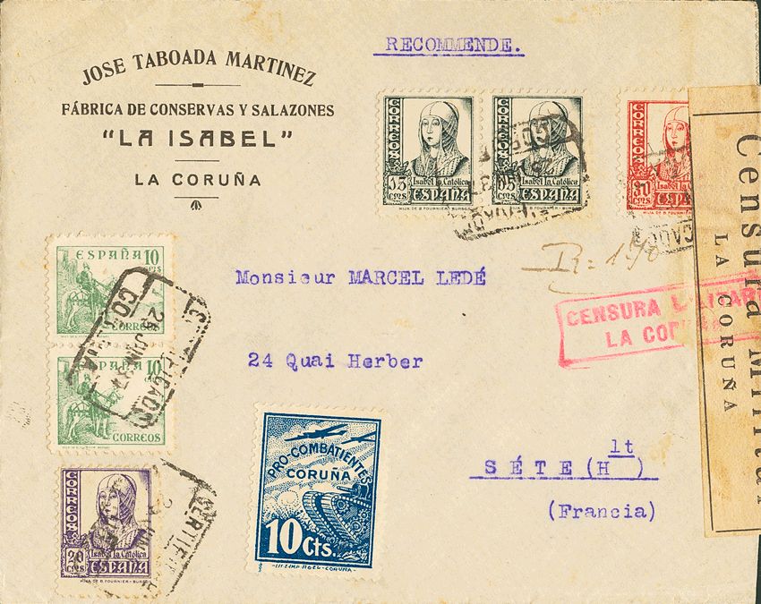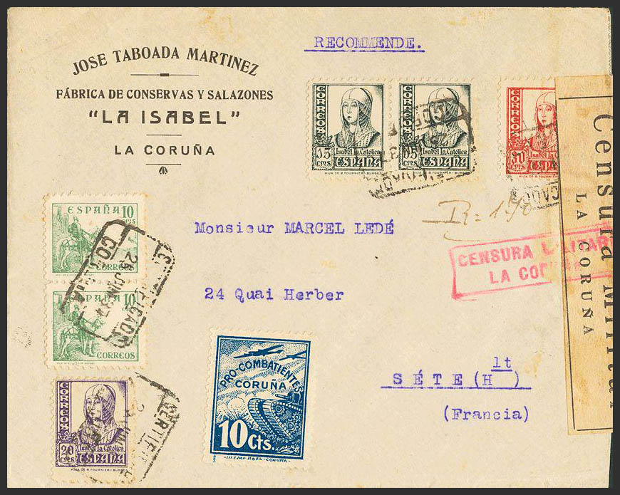 Galicia. Historia Postal. CERTIFICADO / CORUÑA, al dorso llegada. MAGNIFICA.