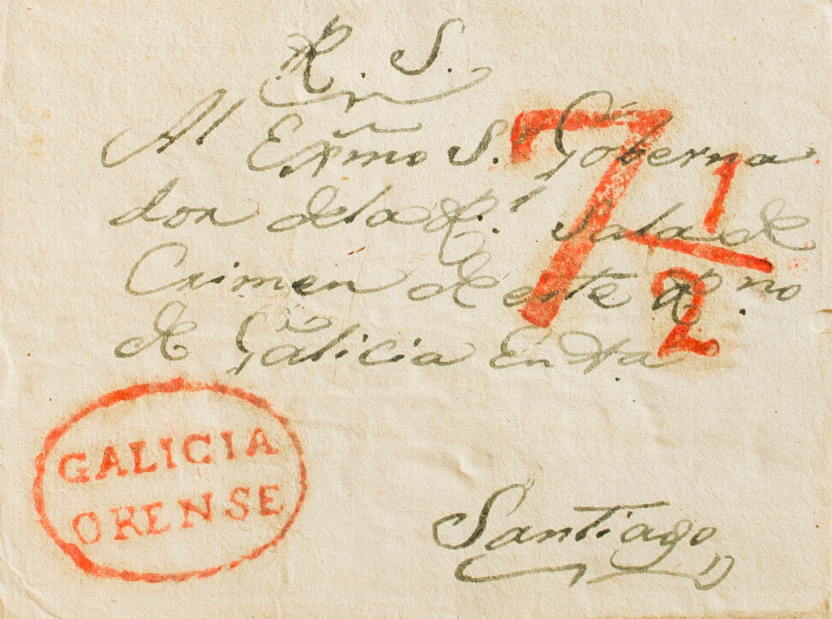 (1818ca). ORENSE a SANTIAGO. Marca GALICIA / ORENSE, en rojo (P.E.9) edición 2004. MAGNIFICA.
