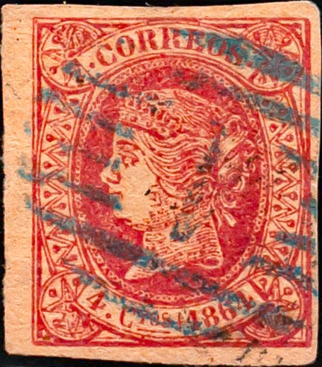 Madrid. Filatelia. PARRILLA CON Nº1, en azul, de Madrid. MAGNIFICO Y RARISIMO.