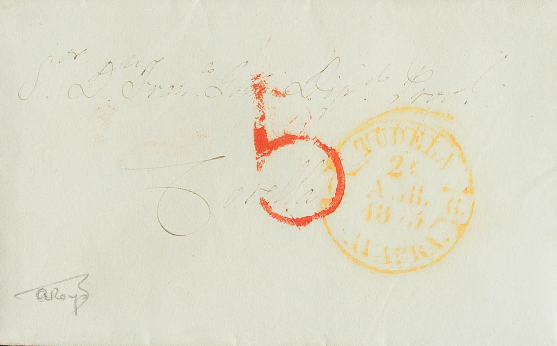 1845. TUDELA a CORELLA. Baeza TUDELA / NAVARRA, en amarillo. MAGNIFICA.