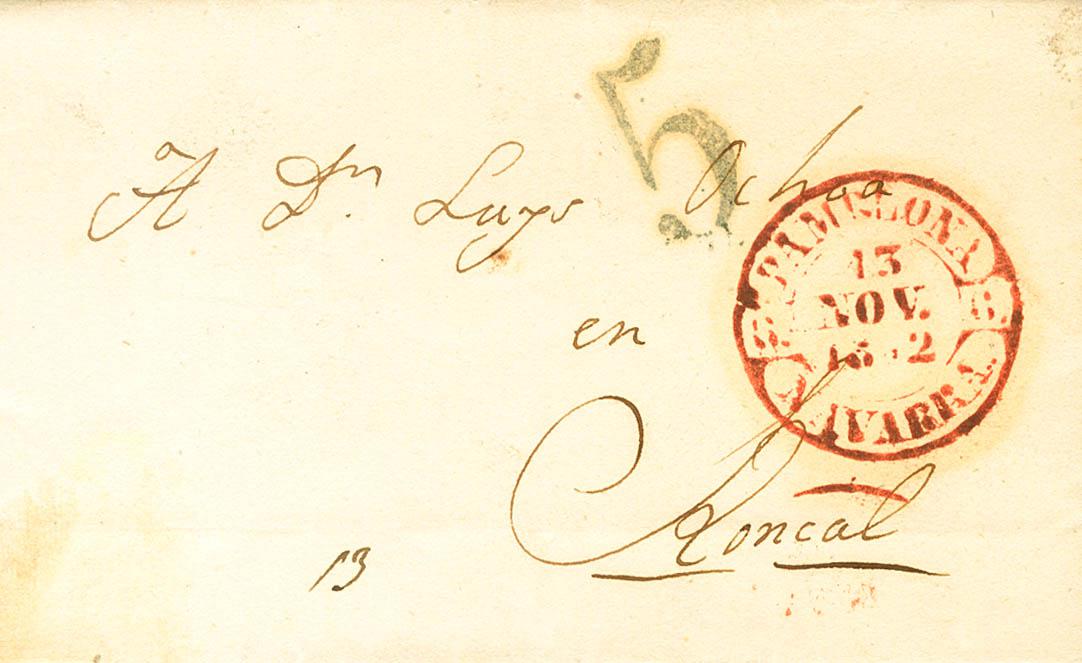 1845. VALTIERRA (NAVARRA) a RONCAL. Baeza CAPARROSO / NAVARRA, en rojo. MAGNIFICA ESTAMPACION.