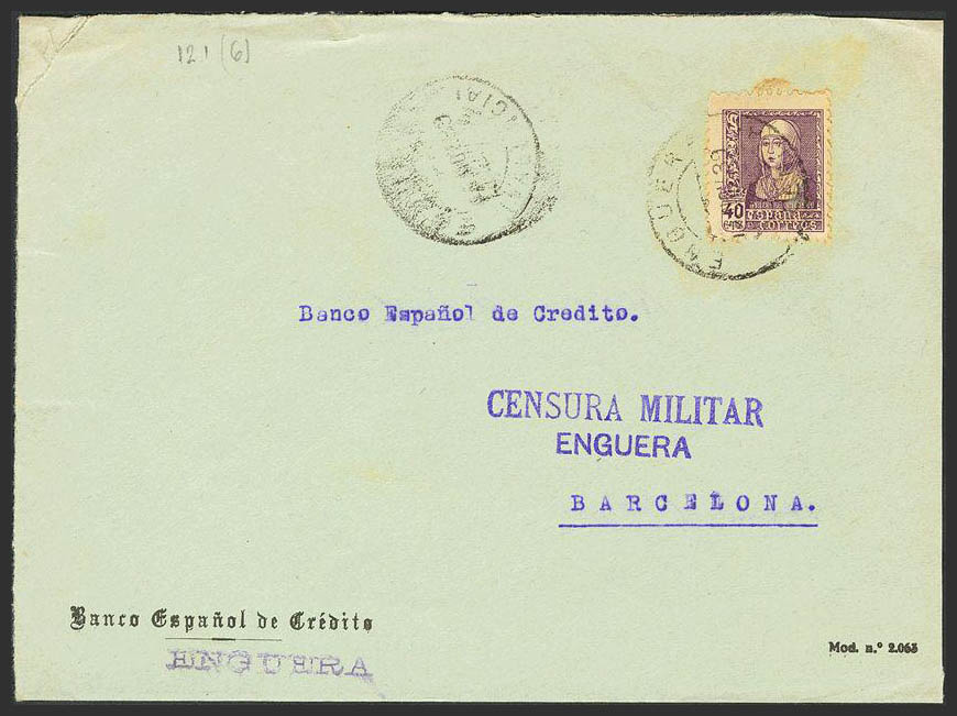 Comunidad Valenciana. Historia Postal. CENSURA MILITAR / ENGUERA. MAGNIFICA.