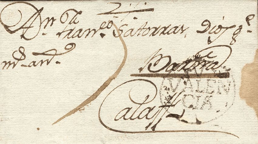1789. VALENCIA a CALAF. Marca V / ALEN / CIA, en negro (P.E.18) edición 2004. MAGNIFICA.