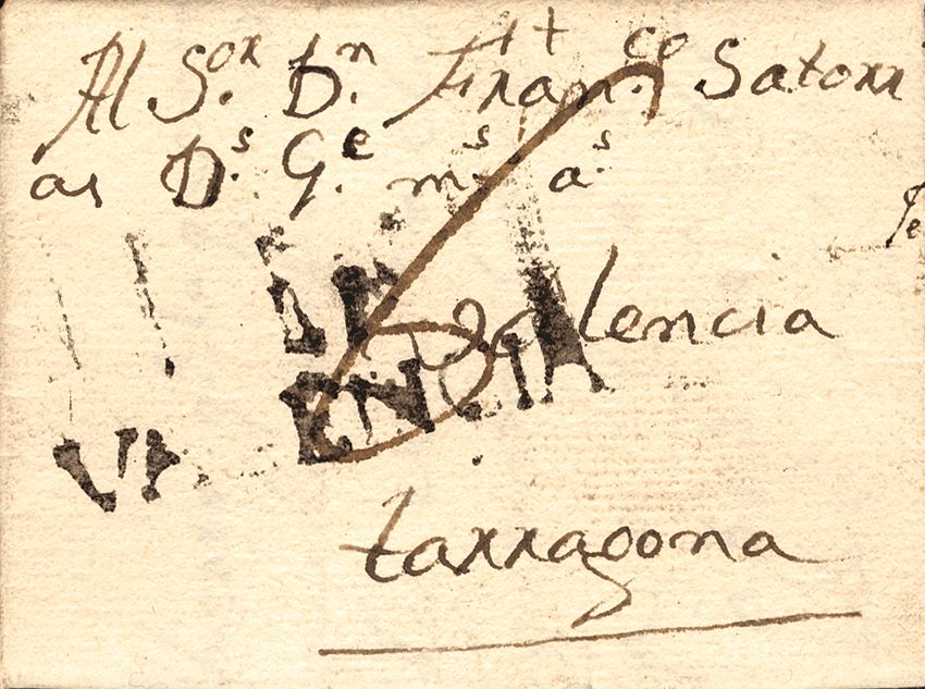 1792. LIRIA a TARRAGONA. Marca LI / VALENCIA, de Liria (P.E.3) edición 2004. MAGNIFICA Y EXTREMADAMENTE RARA.
