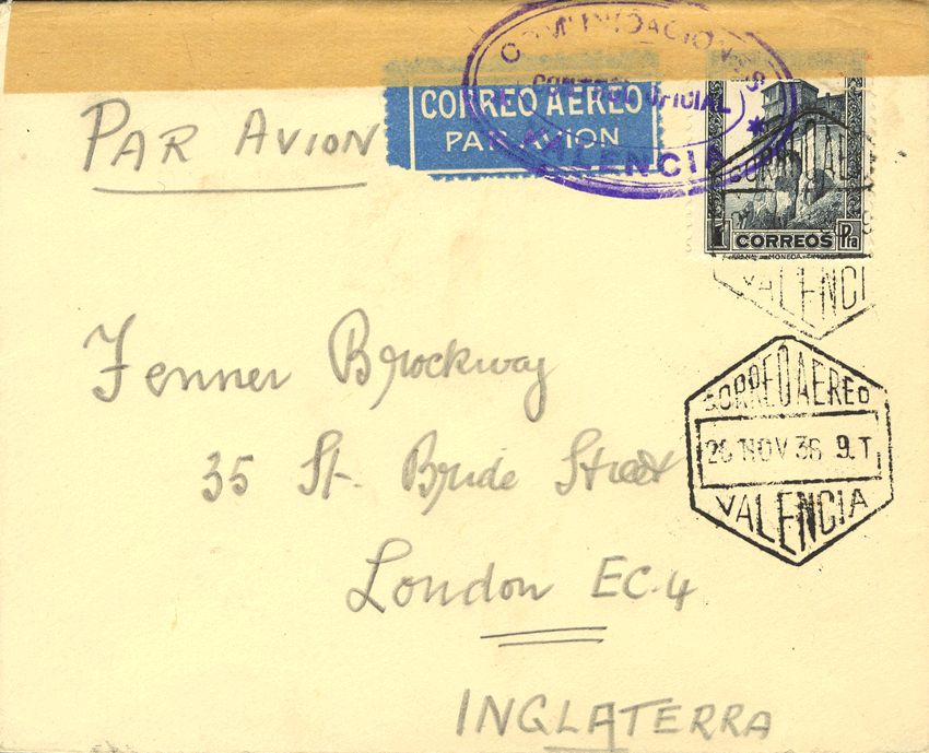 República Española Correo Aéreo. CORREO AEREO / VALENCIA. MAGNIFICA.