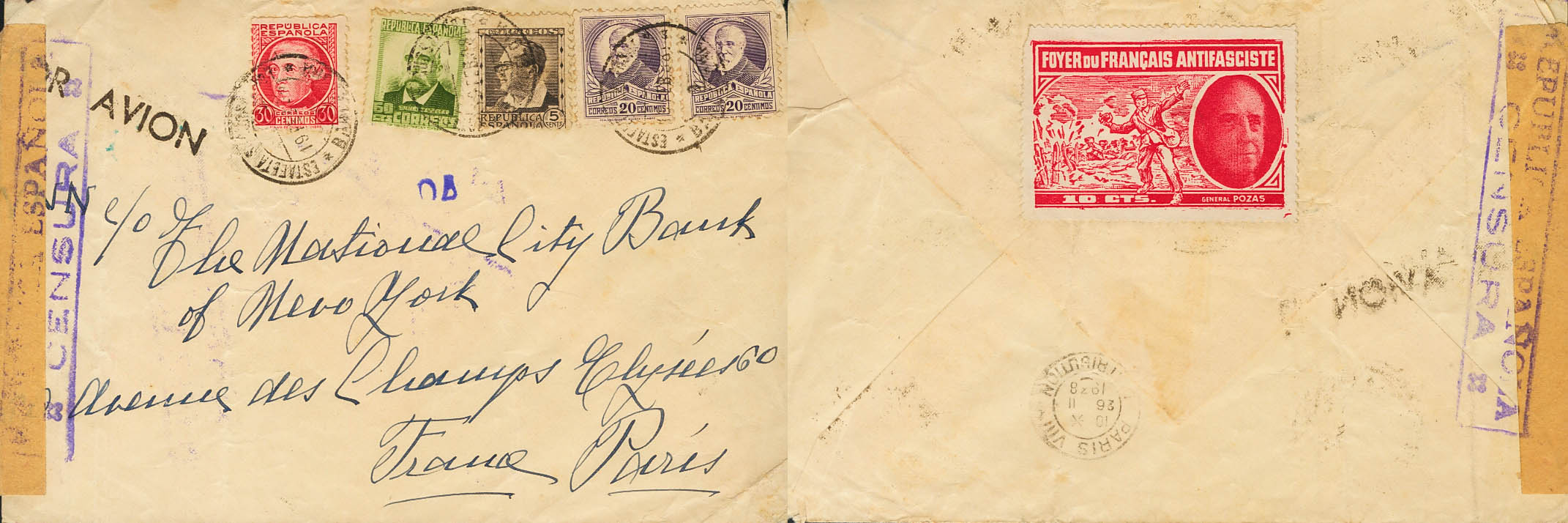 República Española Correo Aéreo. Al dorso llegada. MAGNIFICA.