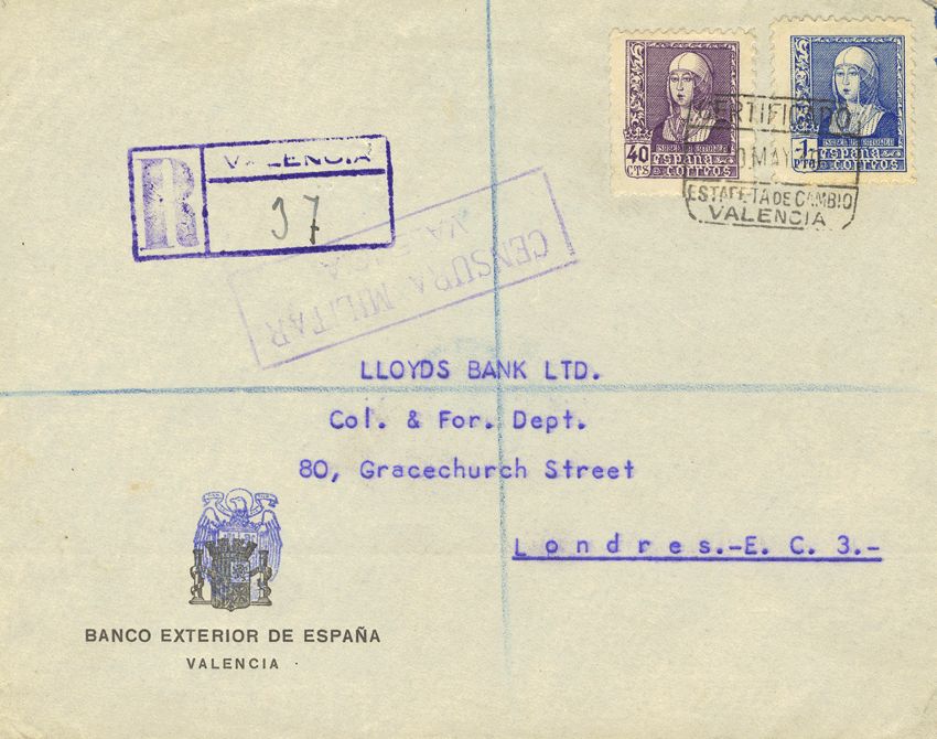 Estado Español Correo Certificado. CERTIFICADO / ESTAFETA DE CAMBIO / VALENCIA, al dorso llegada. MAGNIFICA.