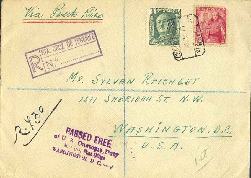 Estado Español Correo Certificado. CERTIFICADO / SANTA CRUZ DE / TENERIFE, al dorso llegada. MAGNIFICO.