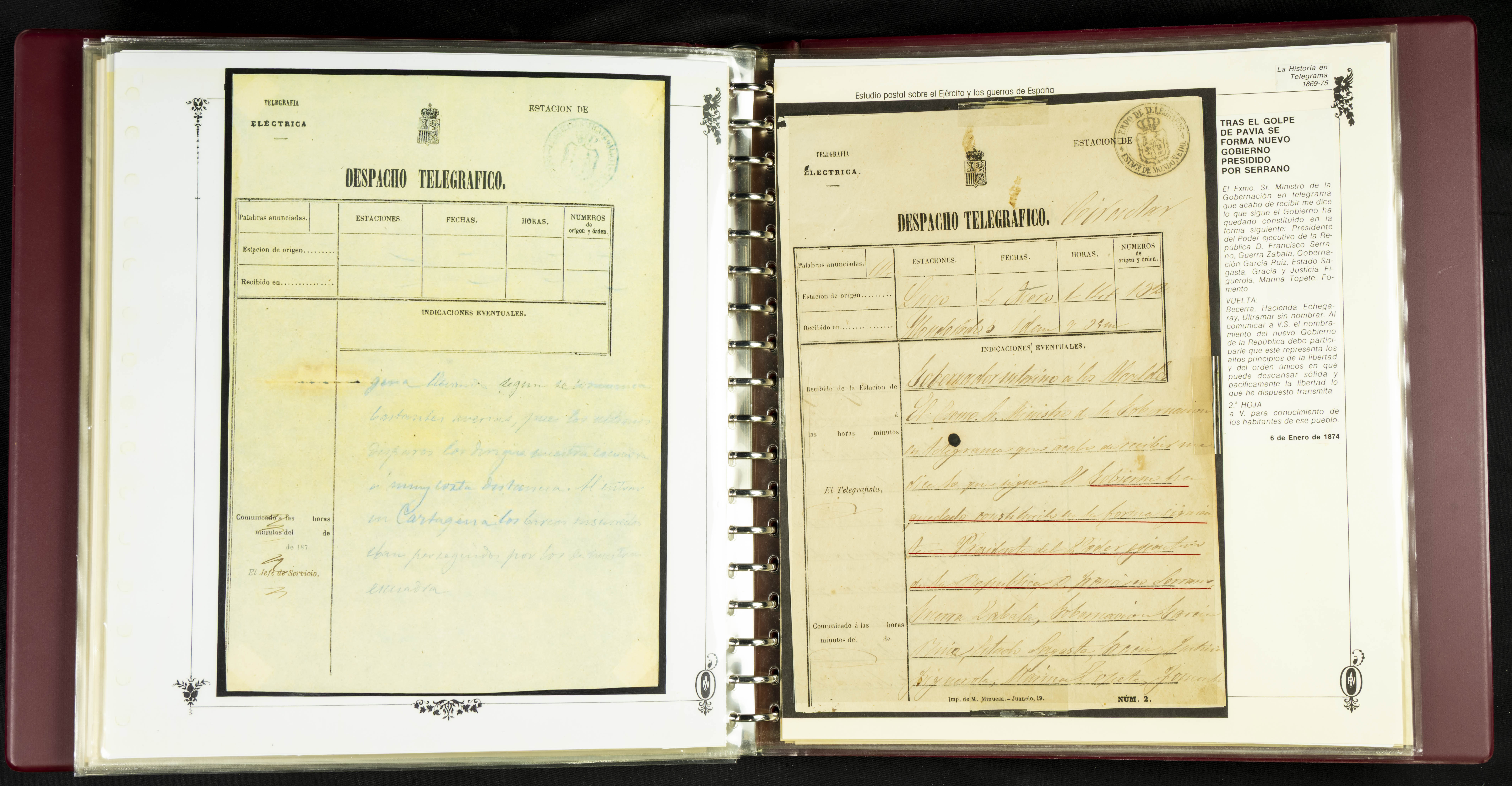 (1869ca). Espectacular conjunto de despachos telegráficos emitidos desde Lugo y La Coruña, con destinos como Mondoñedo, Puentedeume, El Ferrol y Betanzos entre 1869 y 1875, algunos con mensajes importantes de tipo militar, uno acerca de la Insurrección Cantonal, otro sobre la muerte del General Méndez Núñez, proclamación de la I República, etc. MAGNIFICO Y RARISIMO CONJUNTO.
