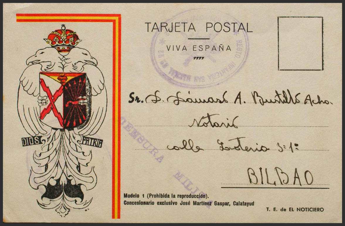 Guerra Civil. Bando Nacional. Marca REGTO. INFANTERIA SAN MARCIAL Nº22, en el frente de Teruel. MAGNIFICA.