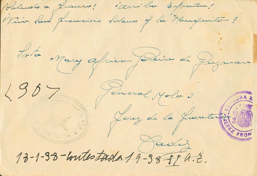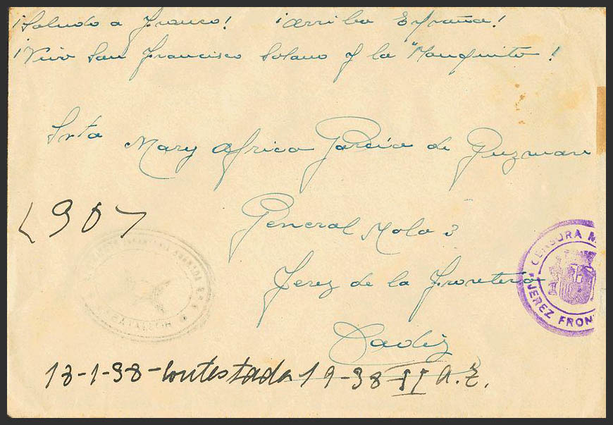 Guerra Civil. Bando Nacional. Circulada con franquicia REGIMIENTO INFANTERIA GRANADA Nº6 / 4º BATALLON. MAGNIFICA.