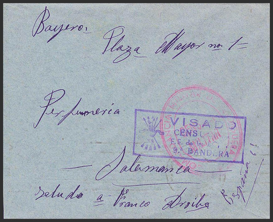 Guerra Civil. Bando Nacional. VISADO / 9ª BANDERA / FE DE LAS JONS. MAGNIFICA.