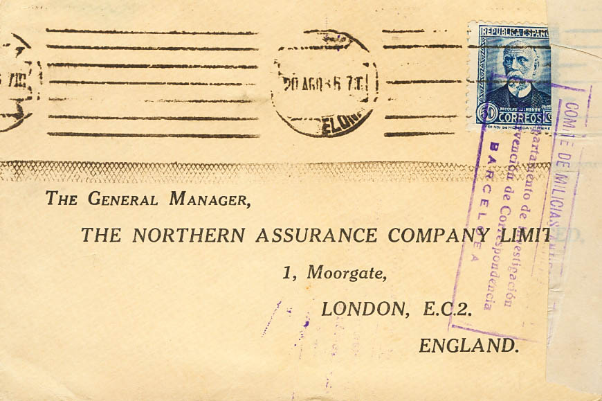 Guerra Civil. Censura Militar Bando Republicano. COMITE DE MILICIAS ANTIFASCISIAS / INTERVENCIONES DE CORRESPONDENCIA / BARCELONA. MAGNIFICA.