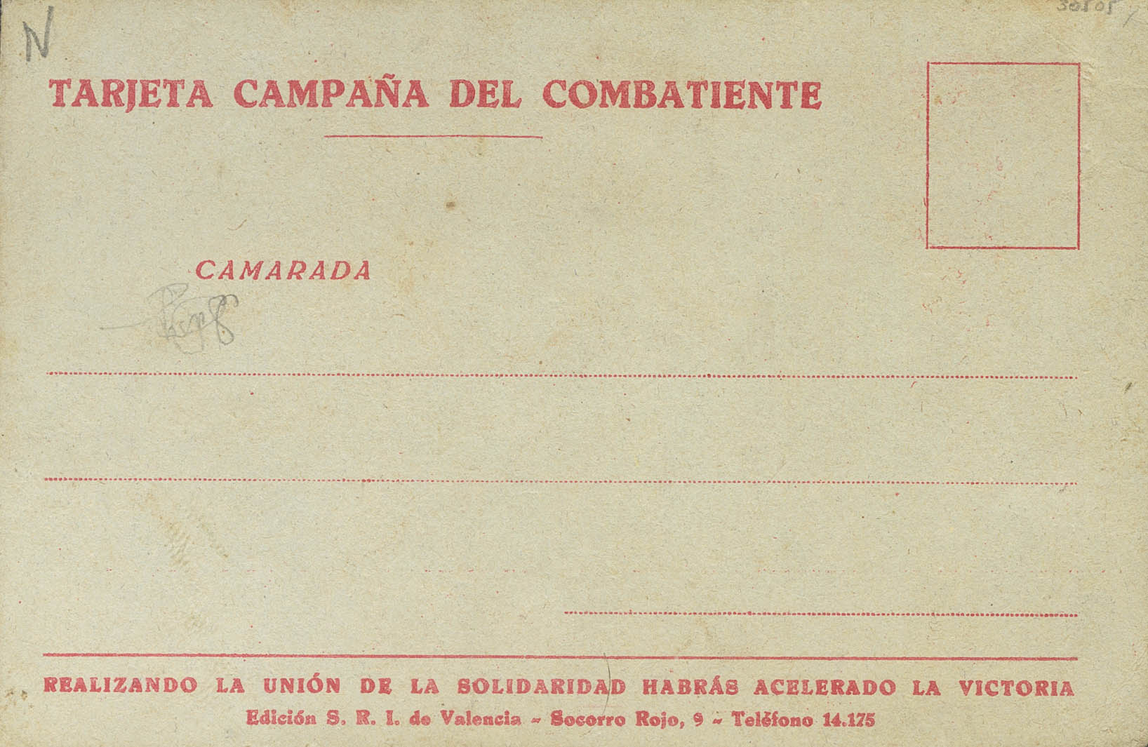 (★)(1937ca). Tarjeta Postal del S.R.I. COMITE PROVINCIAL DE VALENCIA (escrita a lápiz pero no circulada). MAGNIFICA Y MUY RARA. (Allepuz, 57)