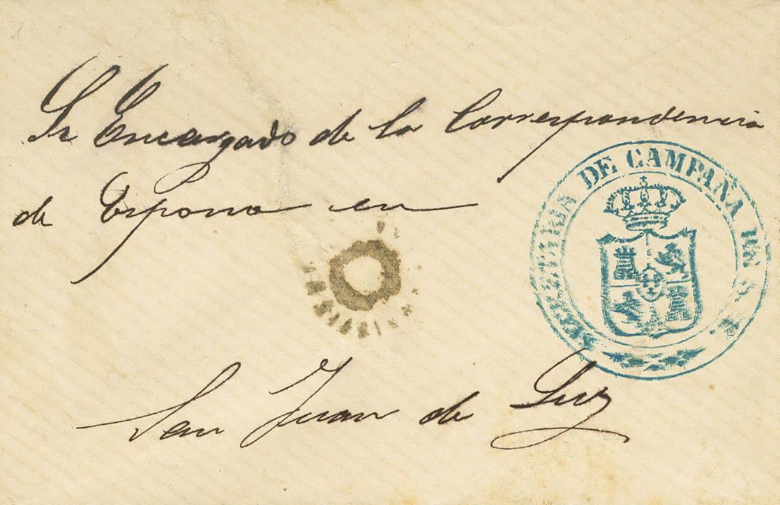 English (1874ca). ESTELLA to SAN JUAN DE LUZ (on the front small embellished tear). SECRETARIA DE CAMPAÑA DE SE, in blue, and SOL DE ESTELLA, in black, used as a franchise. BEAUTIFUL AND RARE.