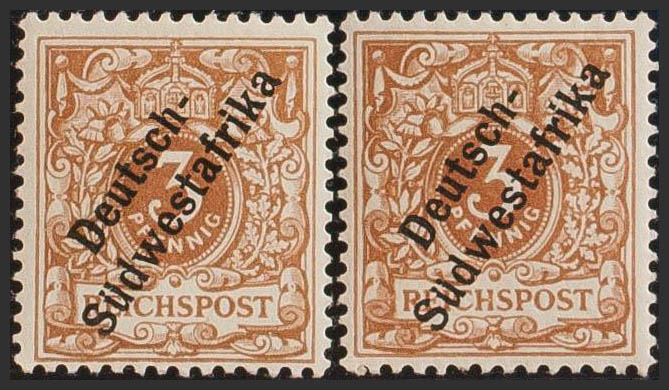 ★Yvert 7(2). 1897. 3 p yellow chestnut, two stamps with different shades. MAGNIFICENT. (Mi5b, 5c 75 Euros)