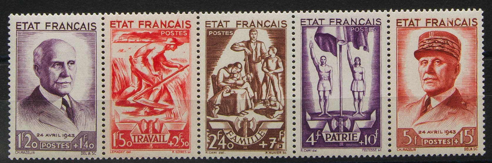 ★★Yvert 576/80. 1943. Complete series, in band of five. MAGNIFICENT. Edifil 2020: 110 Euros