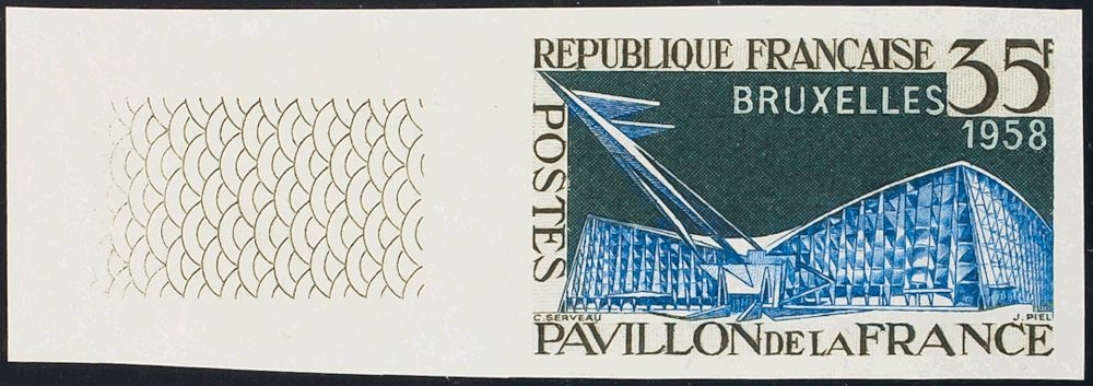 ★Yvert 1156a. 1958. 35 fr dark green and blue. NO TEETH. MAGNIFICENT. Yvert 2014: 46 Euros