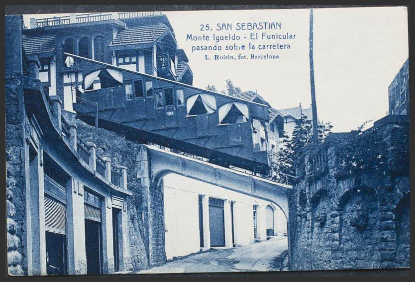 SAINT SEBASTIAN. Mount Igueldo. The Funicular passing over the road.