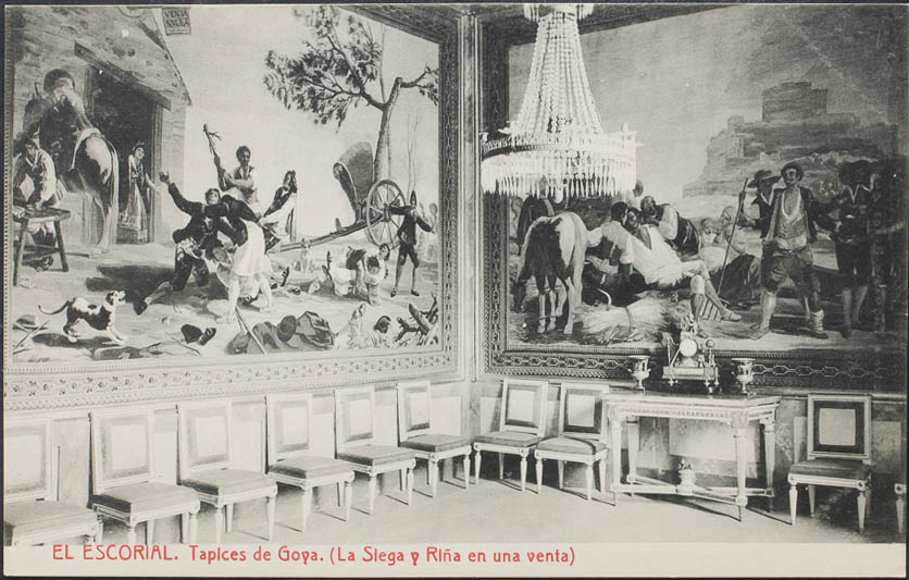 SAN LORENZO DEL ESCORIAL. Monastery. Goya tapestries. La Seega y Riña at a sale.