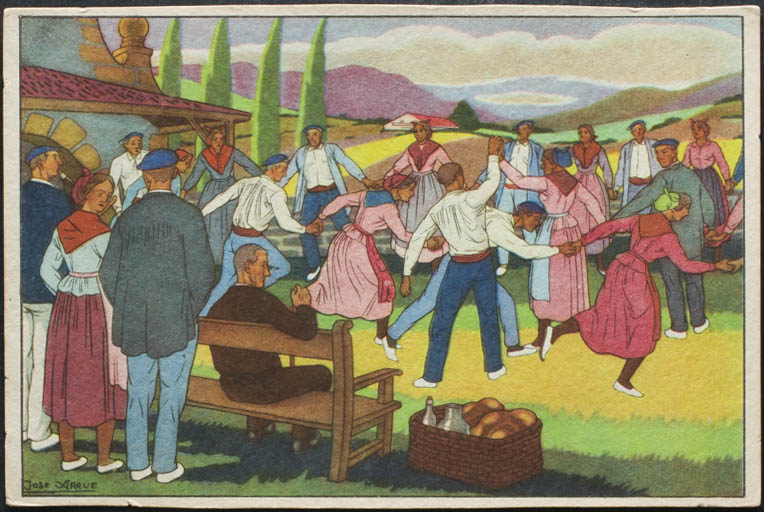 BASQUE POSTCARDS. Drawing by José Arrue.