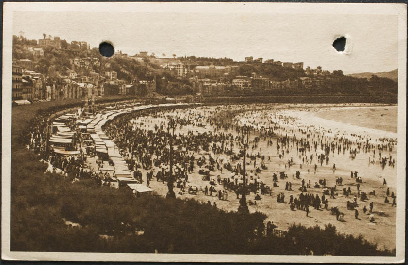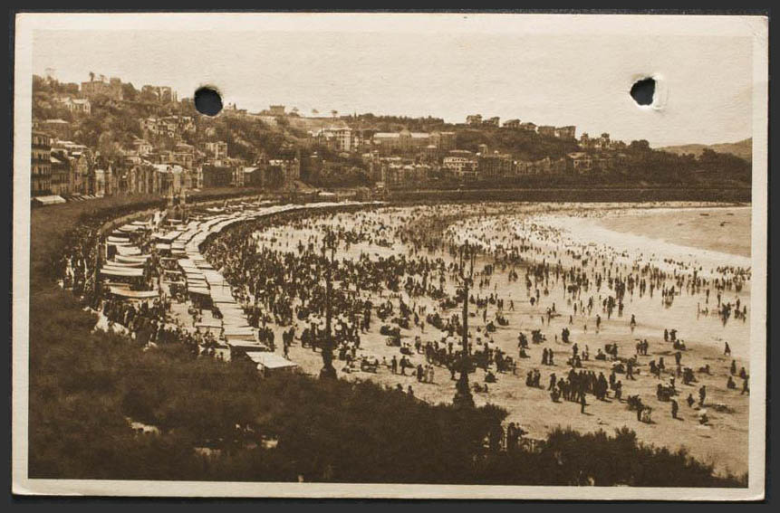English SAINT SEBASTIAN. La Concha Beach (drilled postcard).