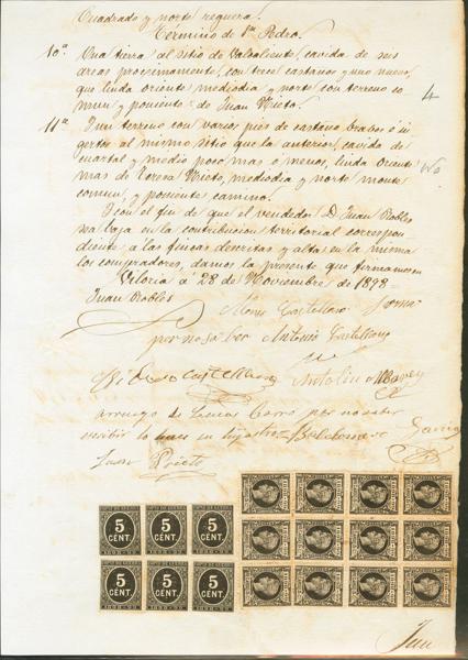 321(11), 322, 323. 1930. 1 pts slate, eleven stamps, 4 pts violet carmine and 10 pts chestnut. Graf Zeppelin circular flight from SEVILLE to SEVILLE. On the front marks PRIMER VIAJE / GRAF ZEPPELIN / A SUDAMERICA / SEVILLA 1930, in carmine and EUROPE PAN-AMERICA / ROUND FLIGHT, in violet and on the back marks of the Router Agent of the Zeppelin BAQUERA, KUSCHE AND MARTIN SA, in violet, transit through New York, in green and arrival. MAGNIFICENT AND VERY RARE WITH THE AGENT'S BRAND ON THE BACK.