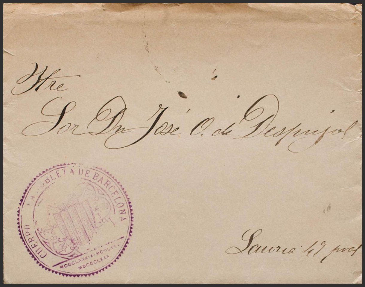 1913. Internal Mail of BARCELONA. Delivered by hand with the CUERPO DE LA NOBLEZA DE BARCELONA brand, in purple, and an invitation inside a Charity Party at the Real Lawn-Tennis Club. MAGNIFICENT AND UNUSUAL.