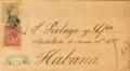 |ENVELOPE| 194, 188. 1879. 25 cents sepia olive and 15 cents carmine War Tax. SAN POL DE MAR (BAGoodELONA) to HAVANA (CUBA). Single postage according to April 1875 rate. MAGNIFICENT.