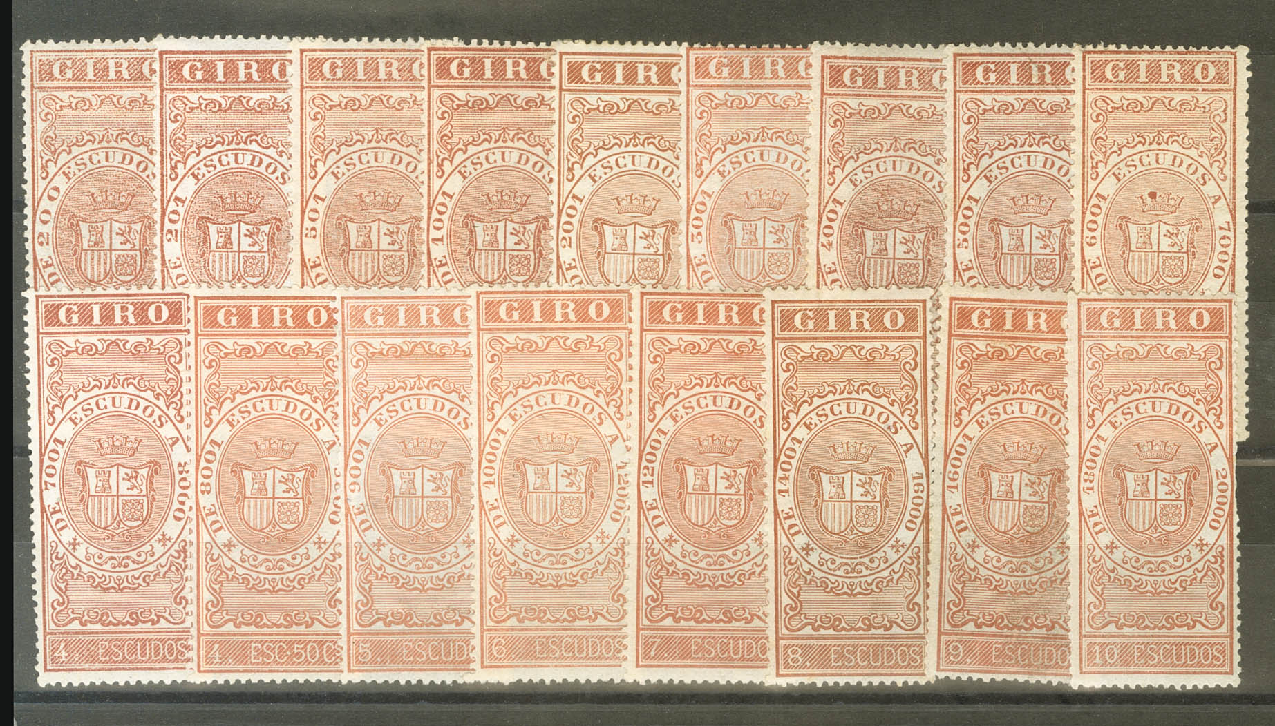 ★1869. GIRO de 1869. Serie completa, diecisiete valores. MAGNIFICA Y MUY RARA. (Jones and Rodríguez CA19/35)