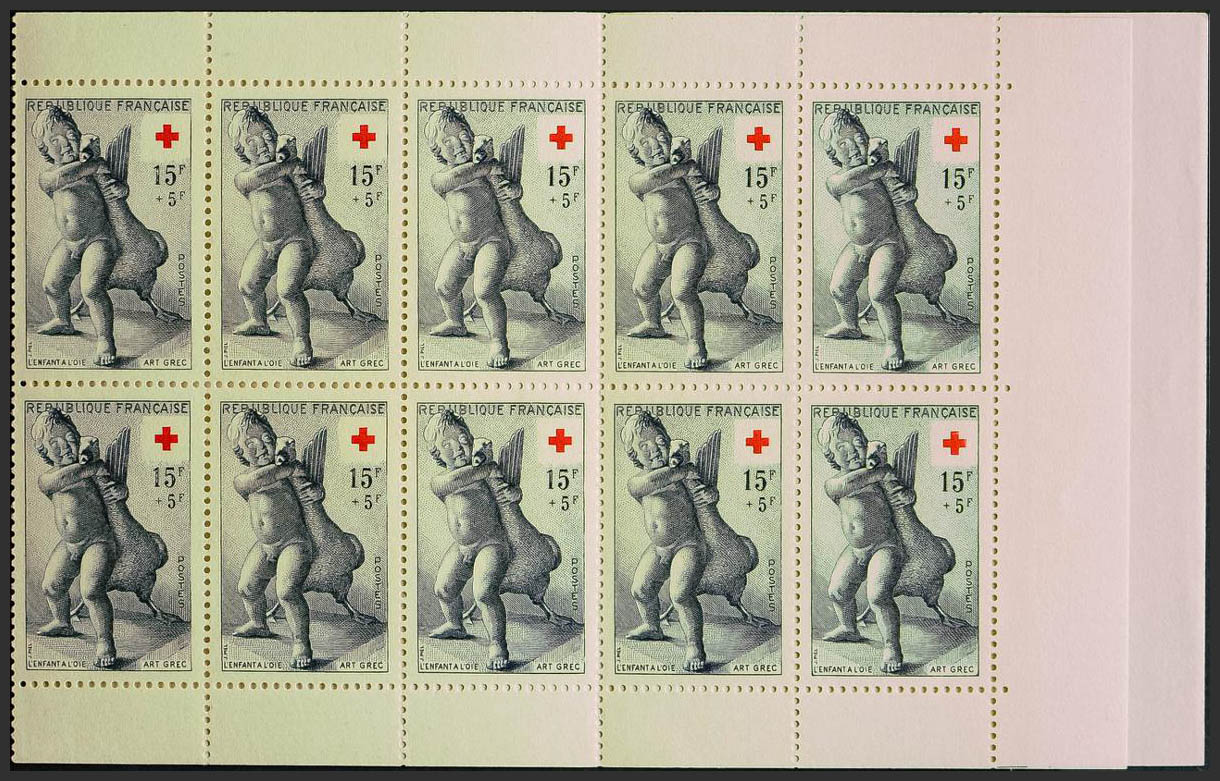 ★★Yvert 2004. 1955. 15 f + 5 f azul y rojo, carnet de diez sellos. MAGNIFICO. Yvert 2014: 450 Euros