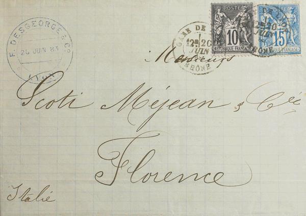 Yvert 89, 90. 1901. 10 cts negro sobre lila y 15 cts azul. LYON a OMEGNA (ITALIA). Al dorso llegada. MAGNIFICA.