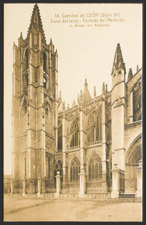 LEON. Catedral de León. Torre del reloj. Fachada del MediodÃa.