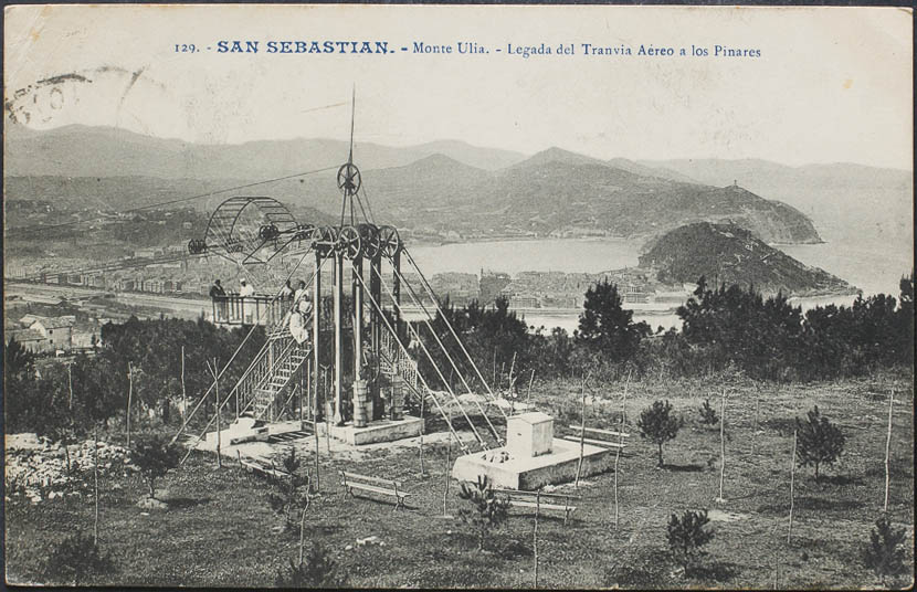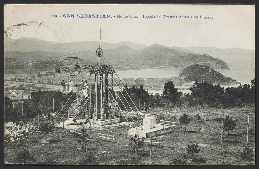 SAN SEBASTIAN. Monte UlÃa. Llegada del TranvÃa Aéreo a los Pinares.