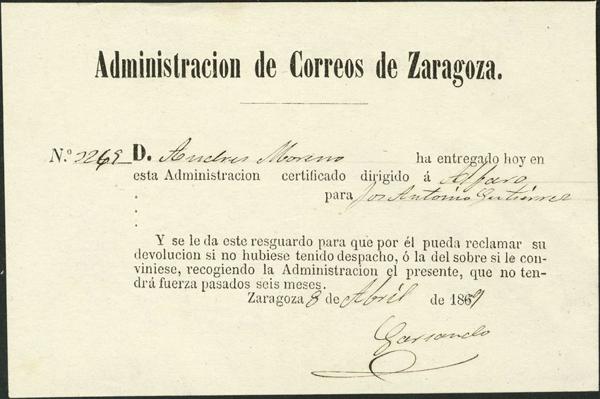 1869. 4 mils sello seco HABILITADO / POR / LA / NACION, sobre bando Municipal de RUBIELOS. MAGNIFICO Y RARO.