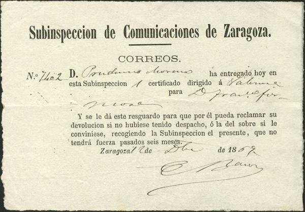 Isabel II. Periodo Dentado. Tarifa de 6 cuartos a Portugal. MAGNIFICA.