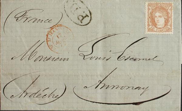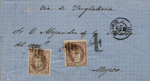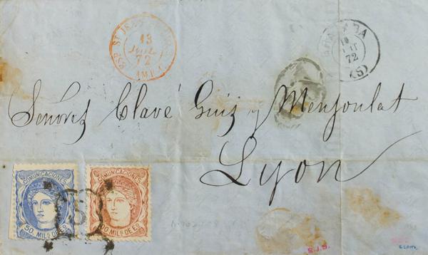Amadeo I. (Un sello defectuoso, sin importancia). MAGNIFICA Y RARO DESTINO Y COMBINACION.